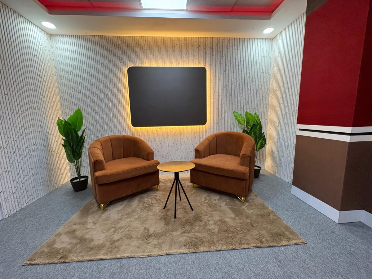 Step into The Cozy Corner, our warm and inviting studio designed for casual podcasts, lifestyle reels, and creative storytelling. With its emerald sofa, soft lighting, and textured wooden walls, this space creates a comfortable, homely vibe that makes your content feel natural and engaging. Perfect for relaxed conversations, solo shoots, and vibrant social media content.